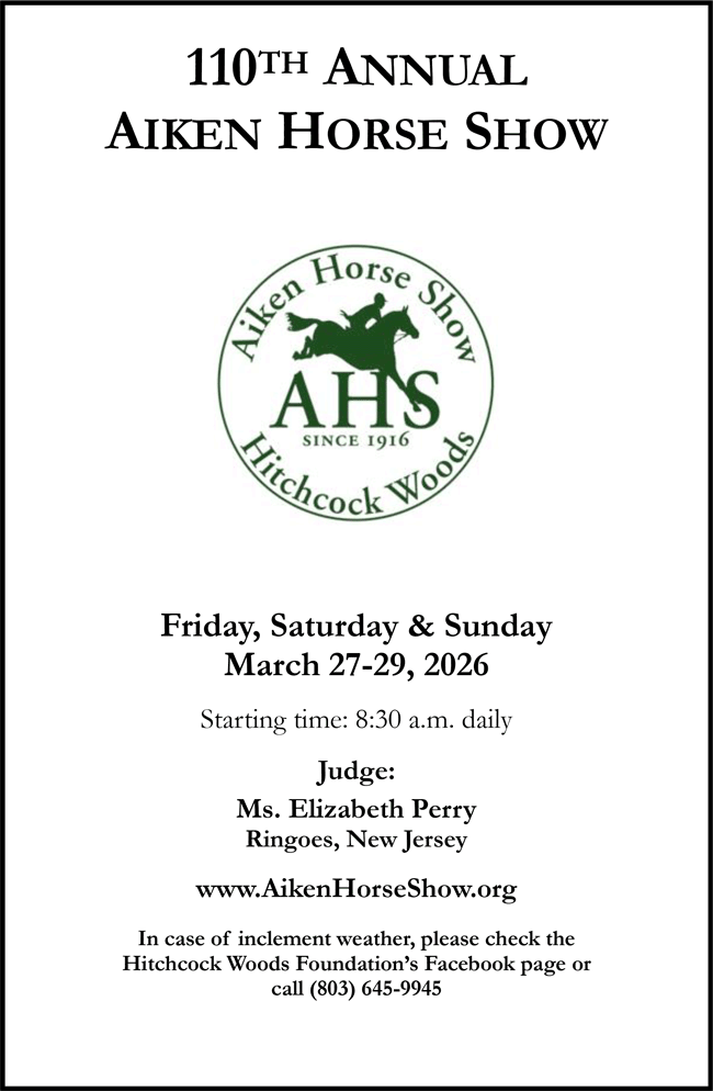 Did you know? The Aiken Horse Show is the signature program and fundraising event for the Hitchcock Woods Foundation, a 501c3 nonprofit organization that owns & manages Hitchcock Woods, and is funded through donor support. Visit www.hitchcockwoods.org for more information.